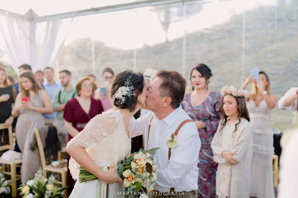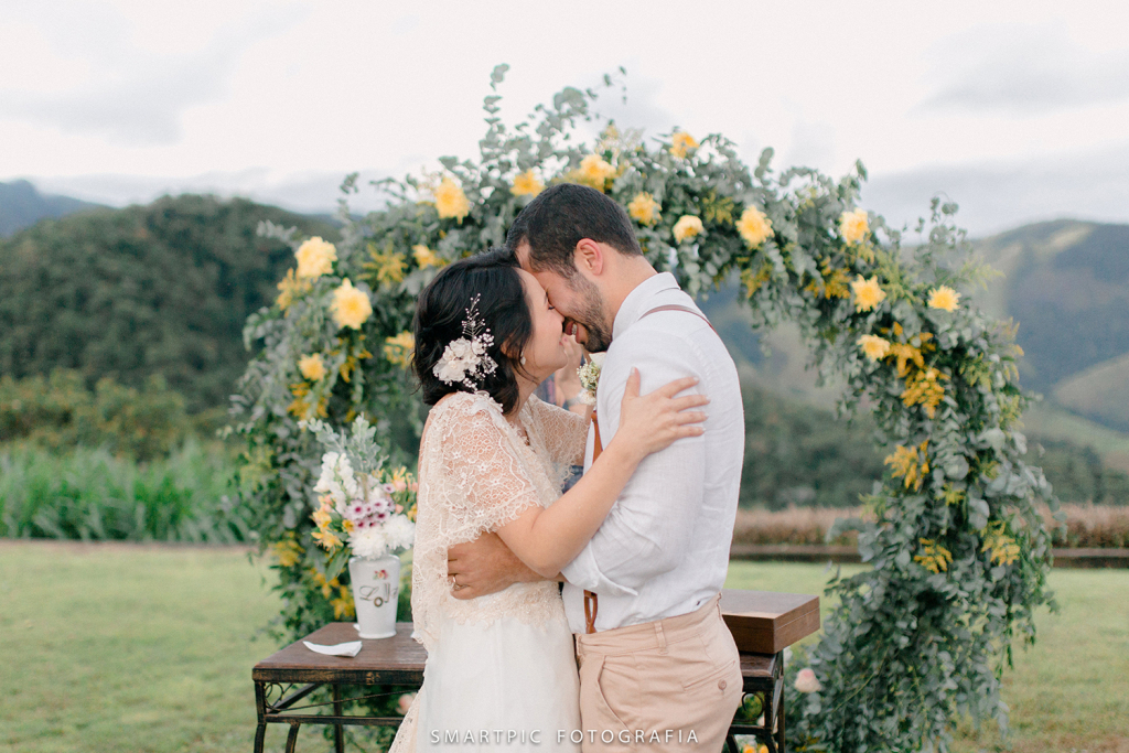 O mini wedding em São Francisco Xavier reuniu apenas 30 convidados, todos selecionados a dedo para compor o ambiente aconchegante que os noivos tanto queriam.