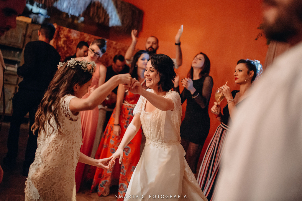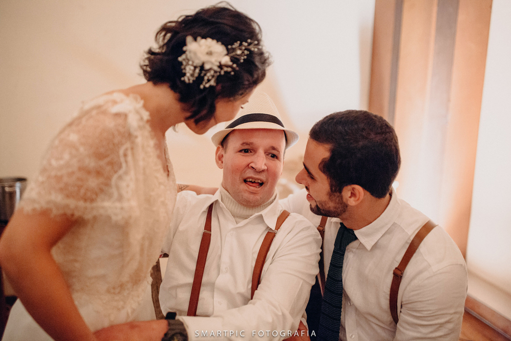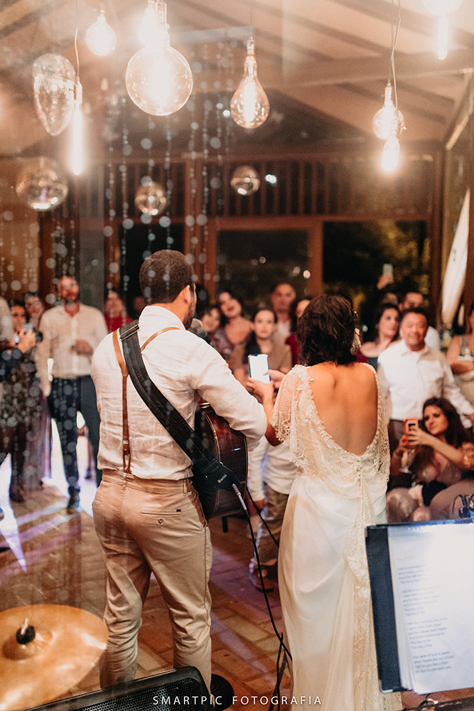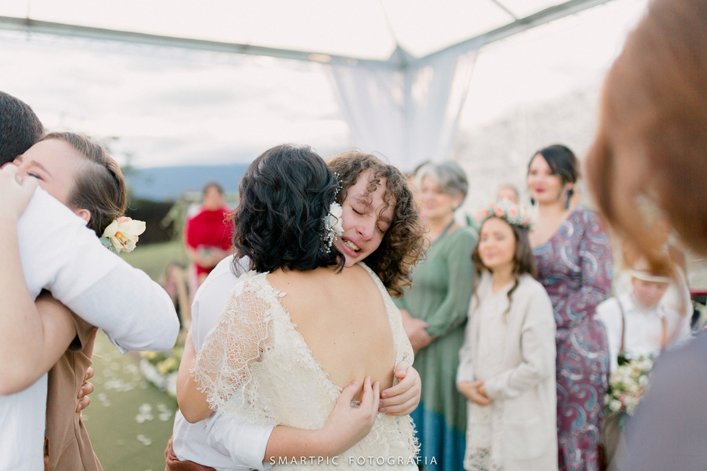 Para a troca de votos abraçaram uma ideia simples: olhar nos olhos de cada ente querido, brindar com cada um. Conforme o relato da Talita (leia abaixo), “era importante que fosse íntimo, profundo e simbólico”.