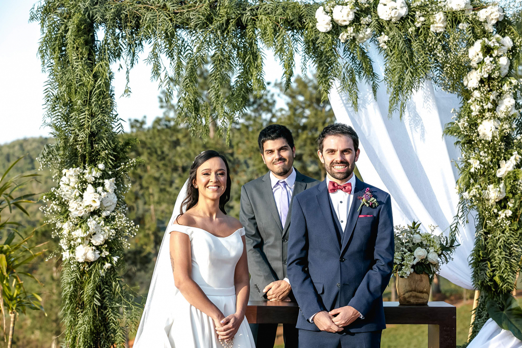 Com muita natureza, a cerimônia ao ar livre contou com um dia especial, que incluiu céu azul e cenário encantador.