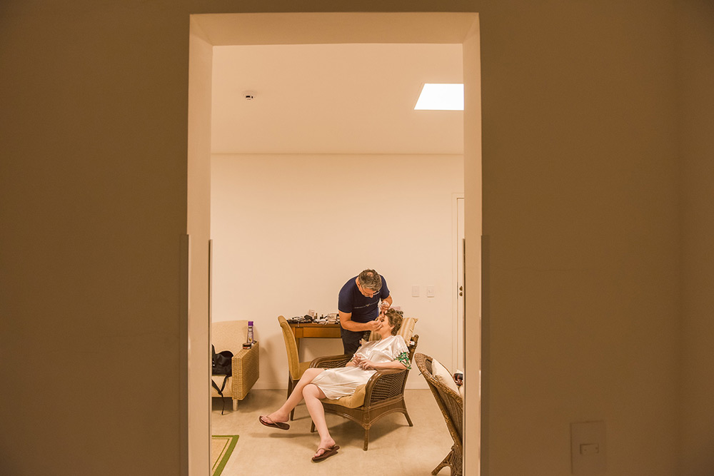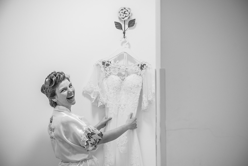 Me arrumei no próprio espaço, o que me deixou muito tranquila. Meu esposo também se arrumou no espaço – na verdade ele ficou com os padrinhos bebendo cerveja e curtindo com eles até 20 minutos antes da cerimônia – hahaha.