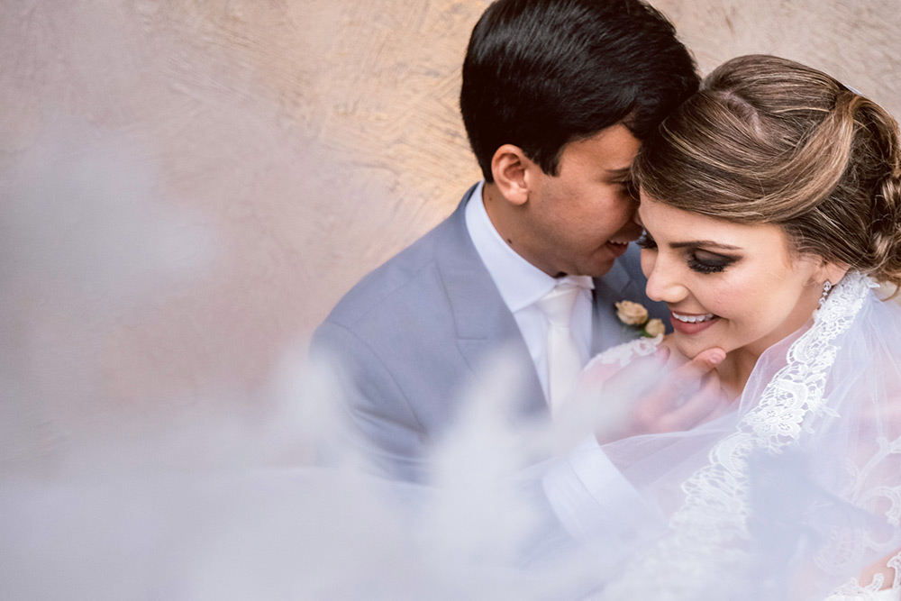 “Eu e o Rodrigo nos conhecemos em 2008 por meio de uma amiga (que foi uma de nossas madrinhas). Eu ainda estava no colégio e ele na faculdade – na época ele fazia algumas aulas na mesma sala que meu irmão, mas só fomos descobrir isso depois.