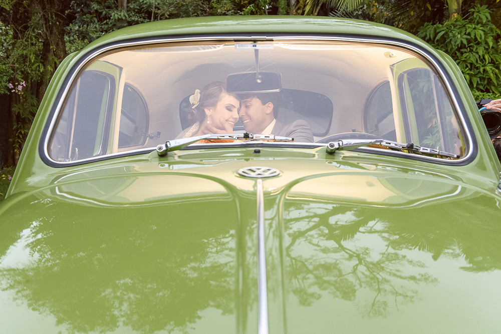 Outro destaque é o Fusca verde, herança cheia de boas lembranças deixada pela avó da noiva. Ele foi o ponto alto da cerimônia e completou o combo de lindezas escolhidas pelo casal.