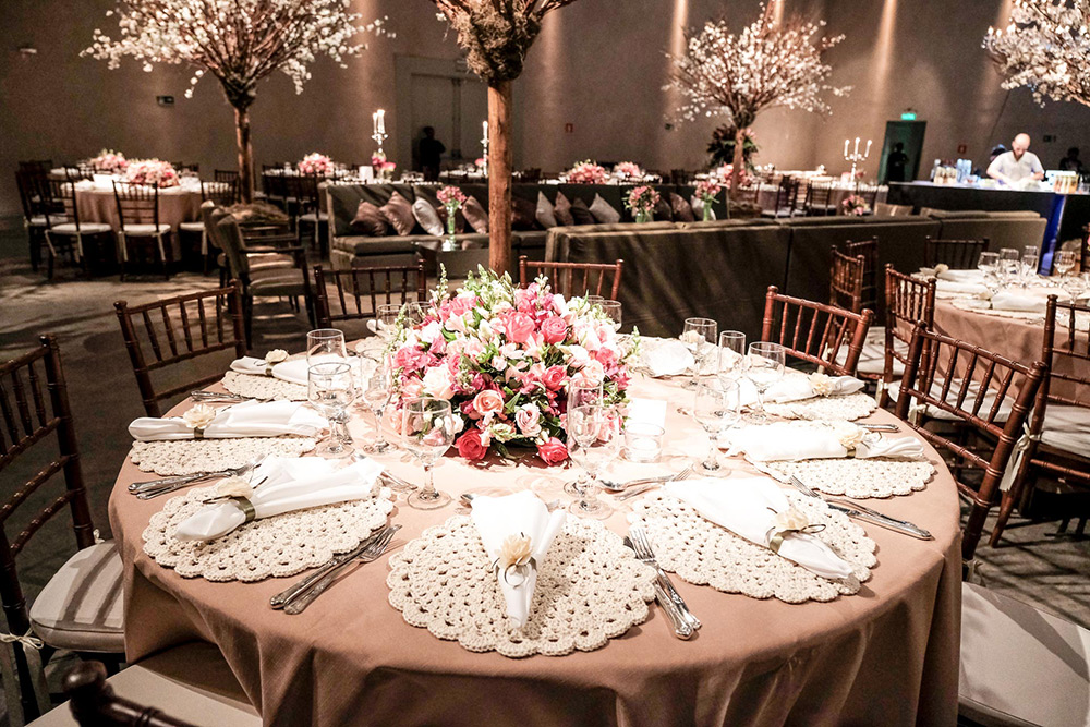 A mãe da noiva fez nada menos que 240 sousplats de crochê. Demais!