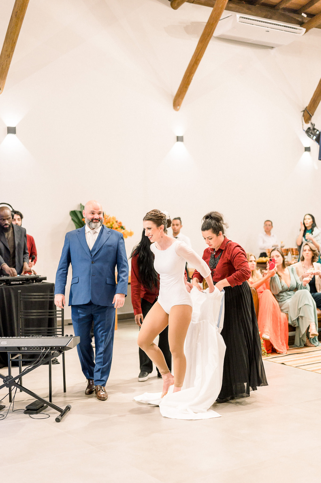 O lindo enlace na Casa Venamore incluiu cores, sorrisos, olhares apaixonados e até um toque circense, com a noiva se apresentando no tecido.