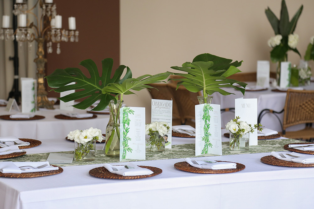 A KaFiori deu o toque pessoal da Thamy e do Diego aos detalhes, que incluiram Costela de Adão, Hortênsias e muitas folhagens. Lindo de viver!