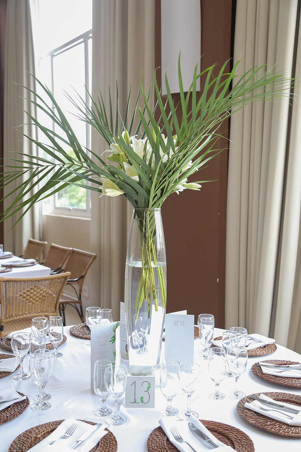Foi estudado o local do casamento, o estilo da decoração, a mensagem que queríamos passar, o vestido, as roupas e presentes das madrinhas e padrinhos, dos pais e avós. Enfim, tudo encaixando e se completando com harmonia, delicadeza e muita personalidade.