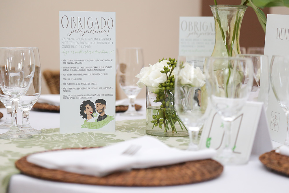 Exatamente como sempre sonhamos, pudemos expressar completamente nossa personalidade. Dica de ouro número 3: identidade visual e comunicação fazem total diferença no projeto do casamento, na expectativa dos convidados, e é possível colocar toda sua criatividade impressa no papel!