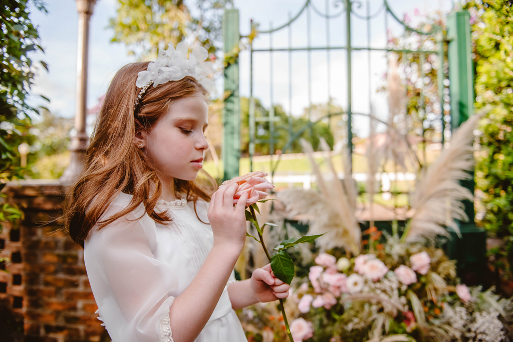 “O editorial The Secret Garden foi idealizado em conjunto pela designer de moda infantil Adriana Magalhães, dona da marca Casa de Bonecas Daminhas, e da designer de grinaldas Giuliane Mello, do Ateliê Bem Casada.
