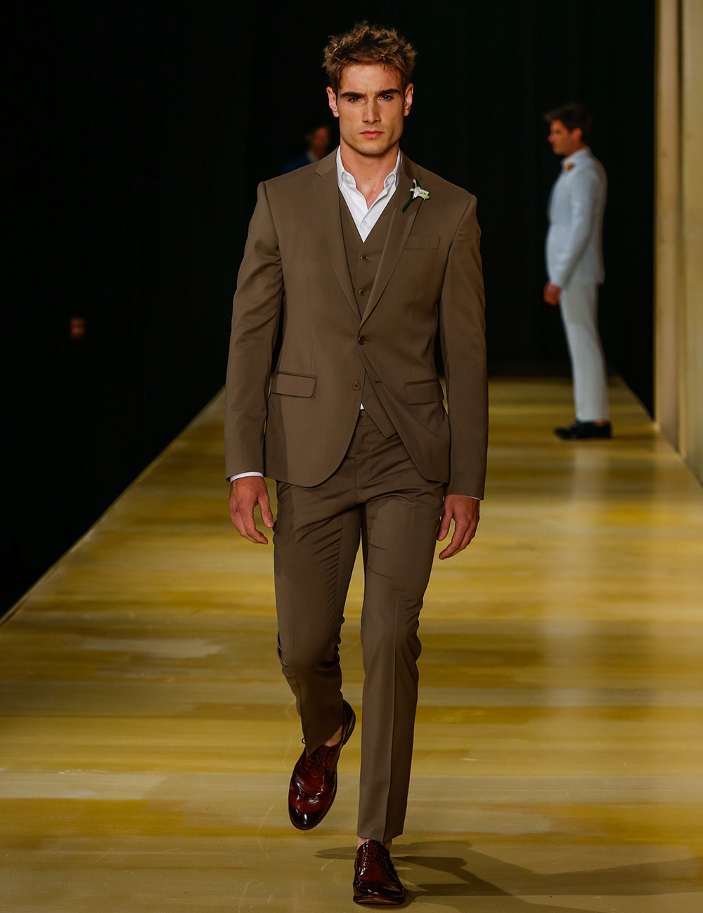 O marrom é uma cor mais sóbria e vai bem tanto em opções descontraídas como em trajes mais clássicos – que ganham uma pequena dose de ousadia por conta da cor.