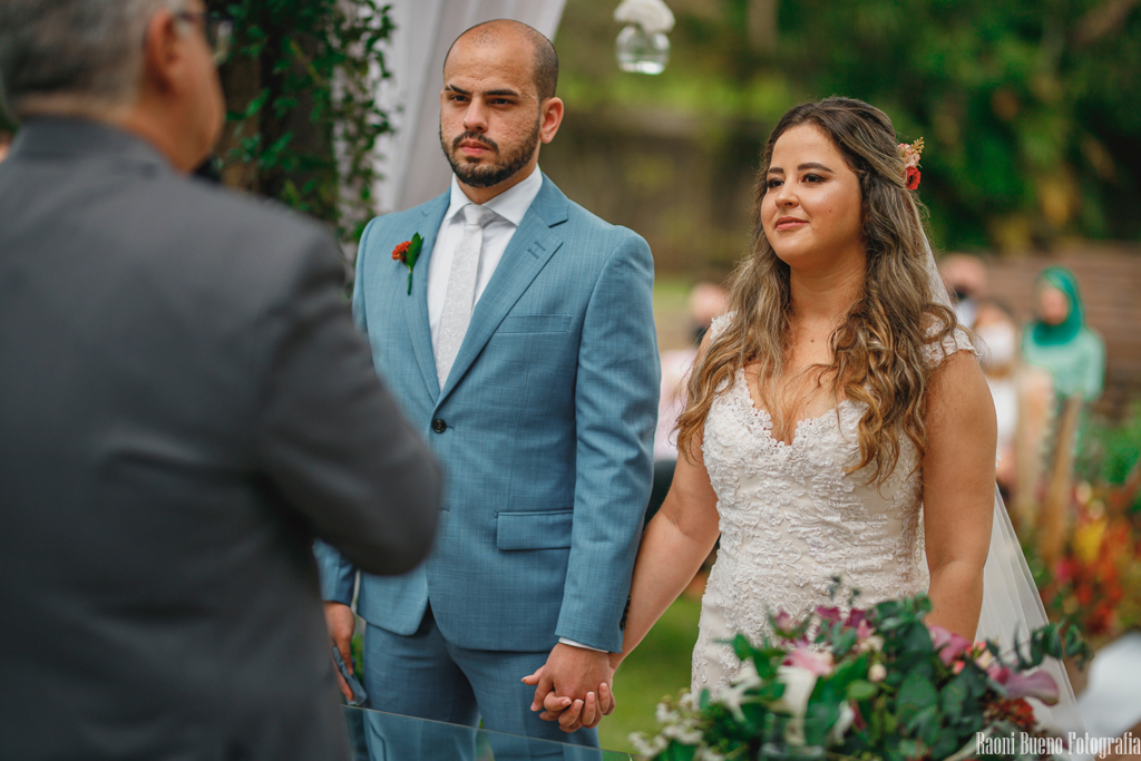 Uma troca de alianças ao ar livre com muita luz, leveza e energia boa. Mesmo com as restrições impostas pela pandemia, o casal teve um enlace perfeito, com pessoas queridas e amor em cada cantinho.