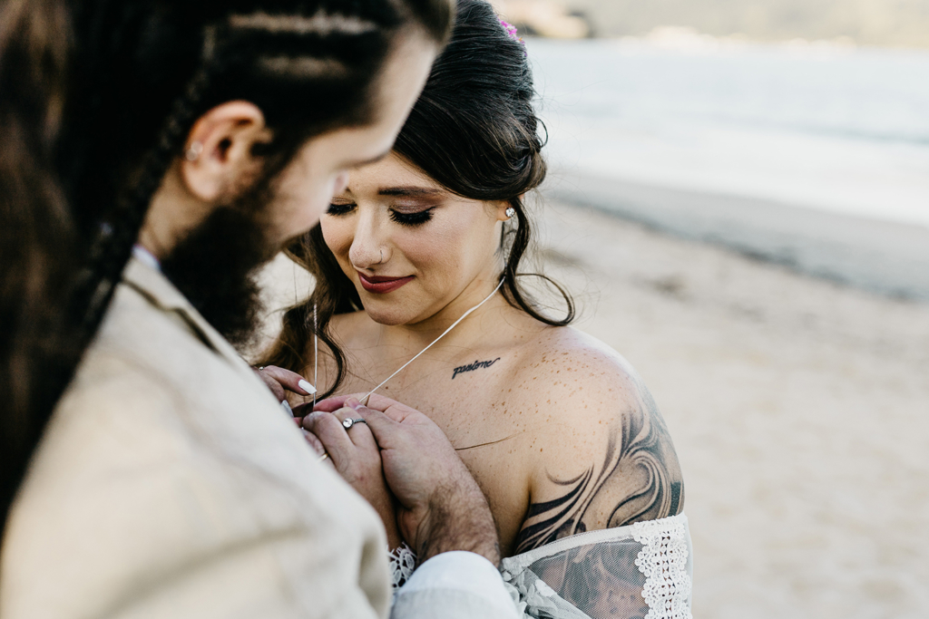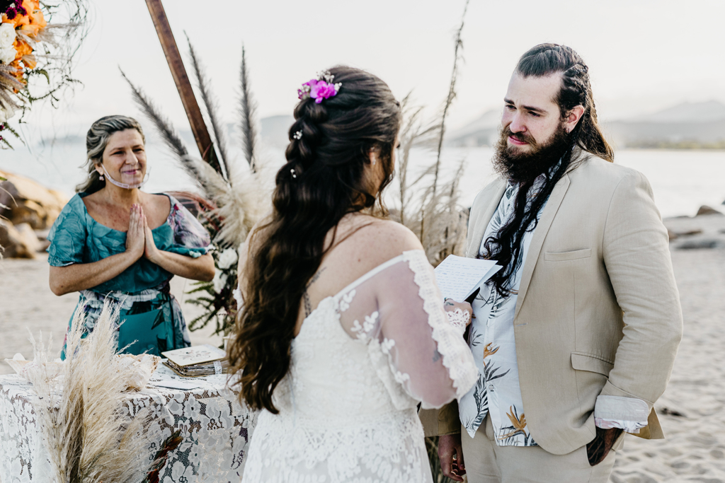 Com vocês, uma linda troca de votos pé na areia.