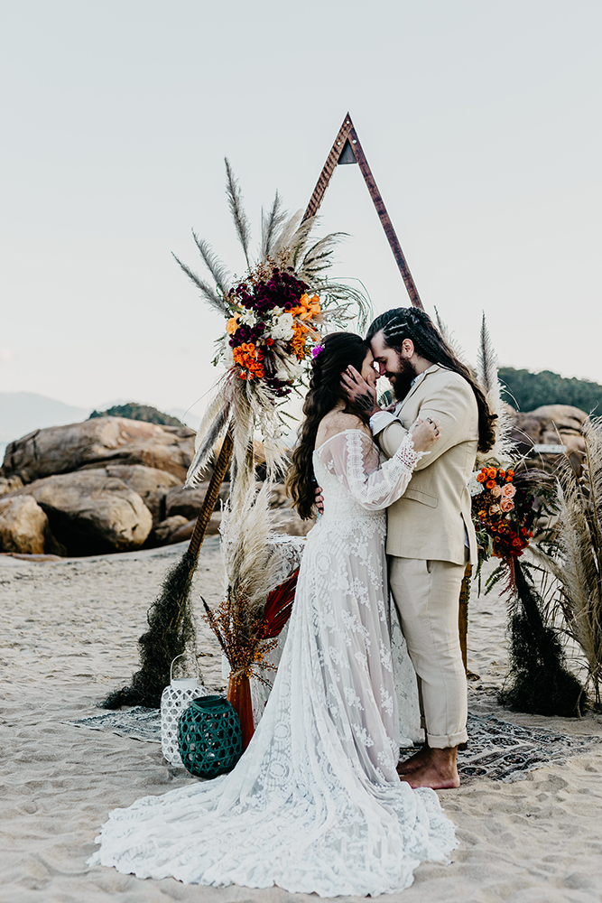 Concebido pelo fotógrafo Mar Souza, a principal motivação para essa linda troca de votos pé na areia foi justamente o casamento na praia.