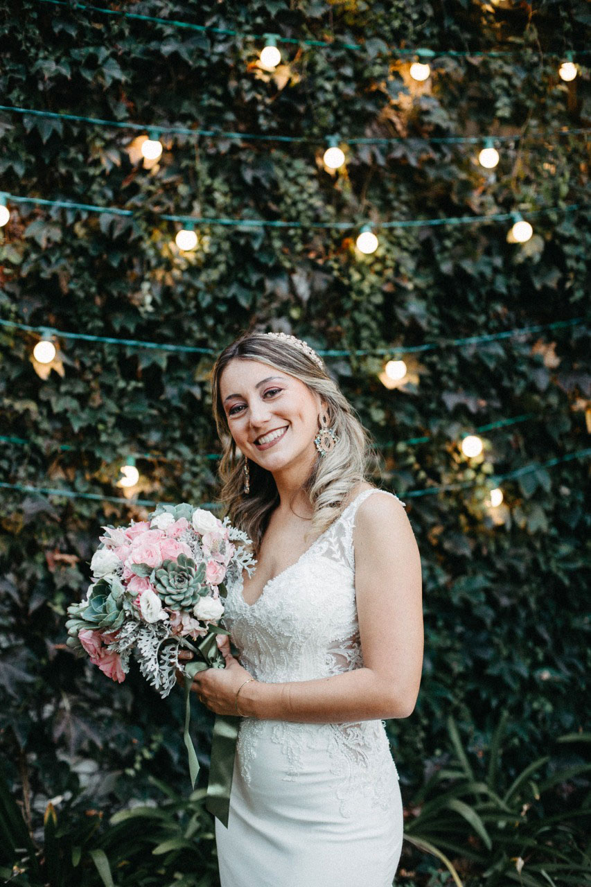 Da decoração com toques de cor de rosa ao vestido de noiva em modelo sereia, tudo conspirou para um dia leve e feliz.