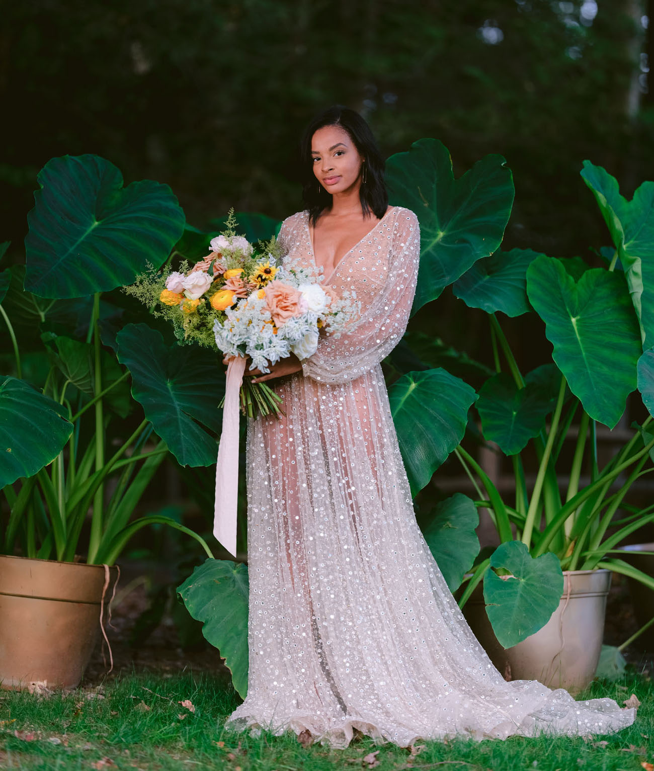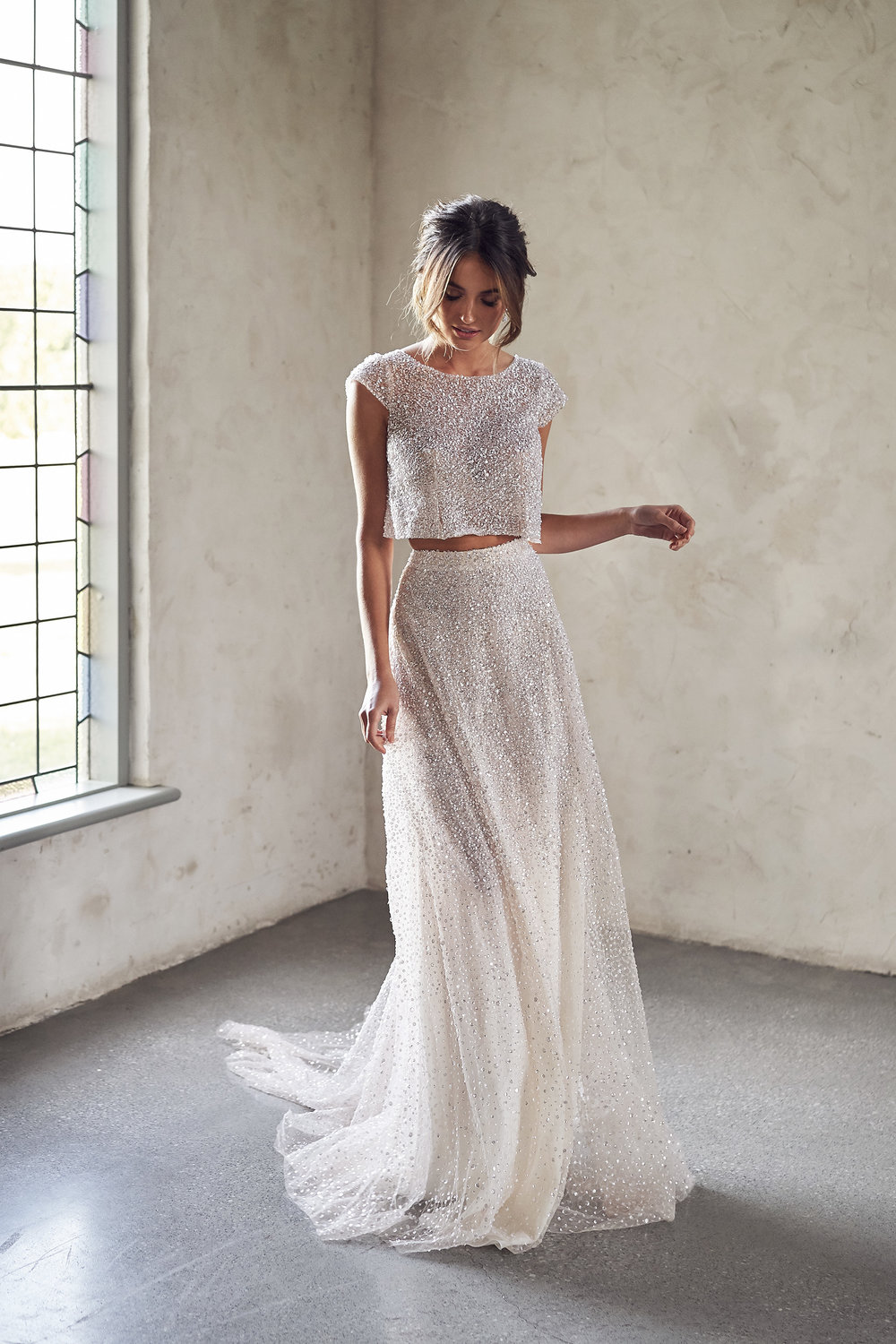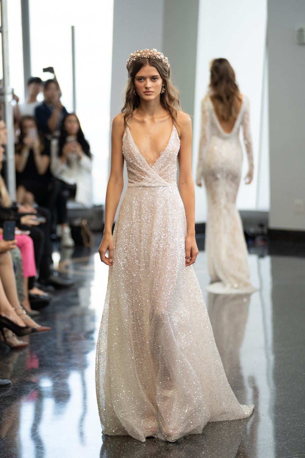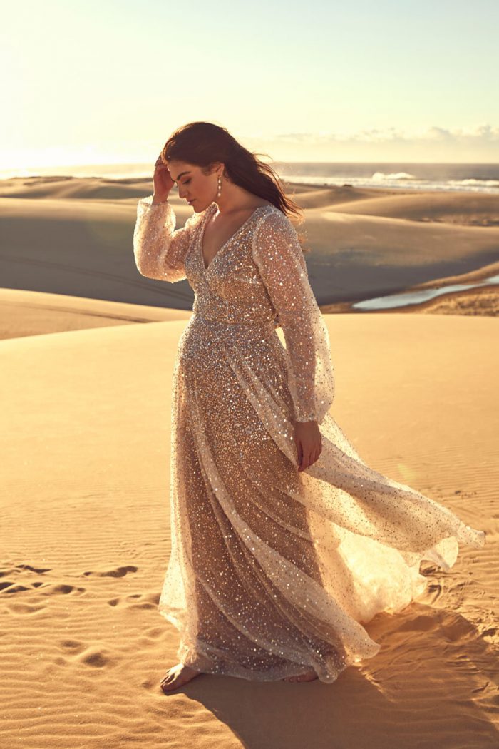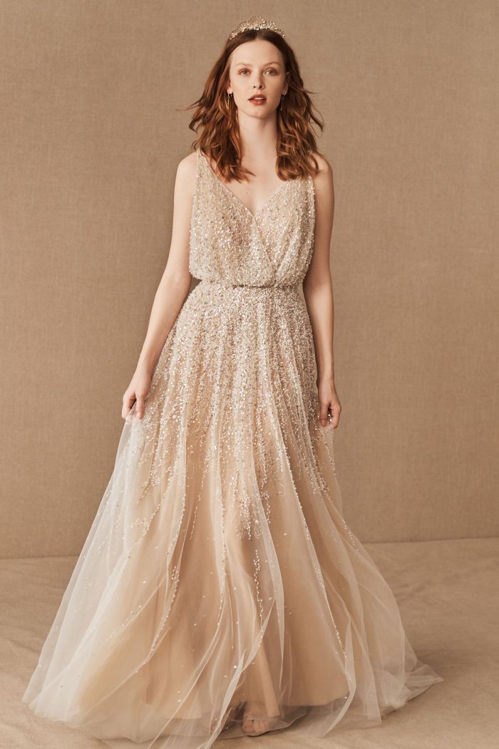 Com miçangas brilhantes e lantejoulas, os vestidos de noiva com brilho se situam em algum lugar entre uma deusa etérea e uma estrela do rock glamourosa.