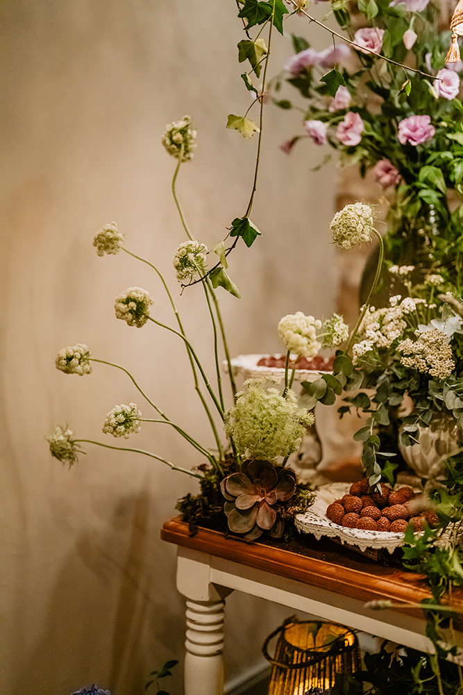 Dos arranjos florais aos bem casados, a paleta foi usada na medida.