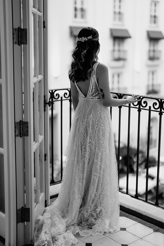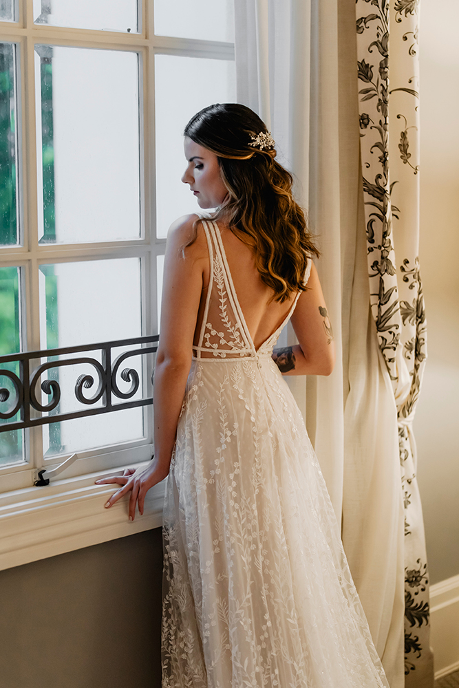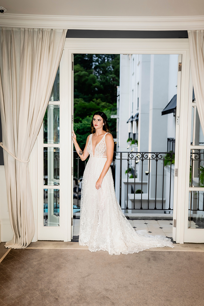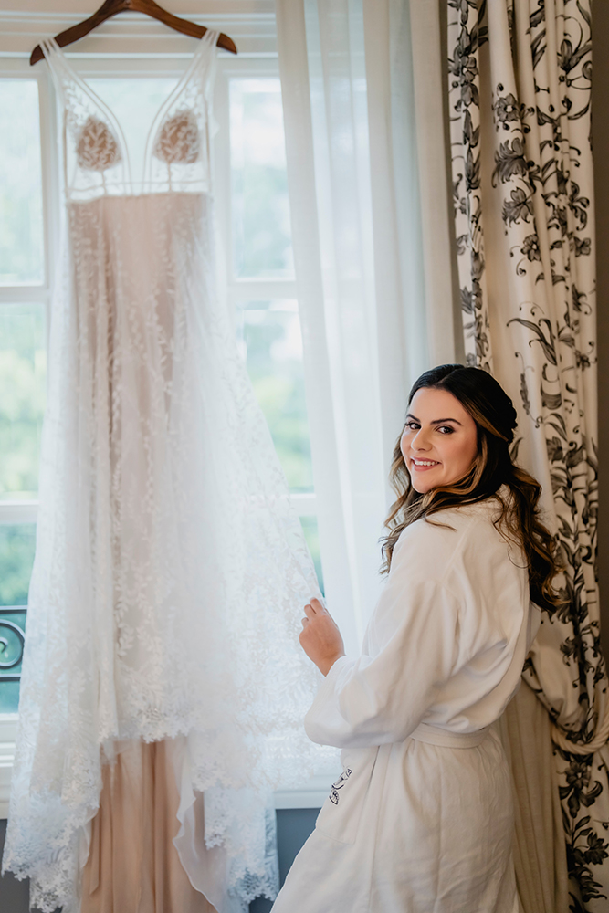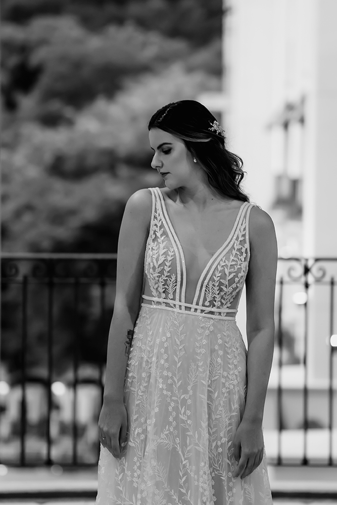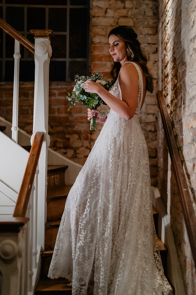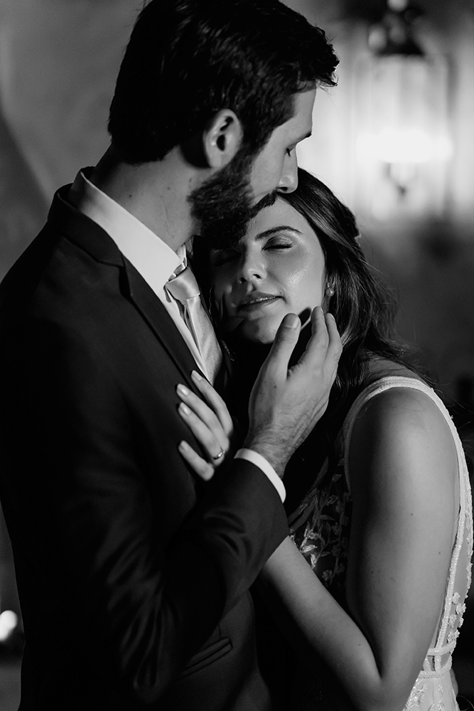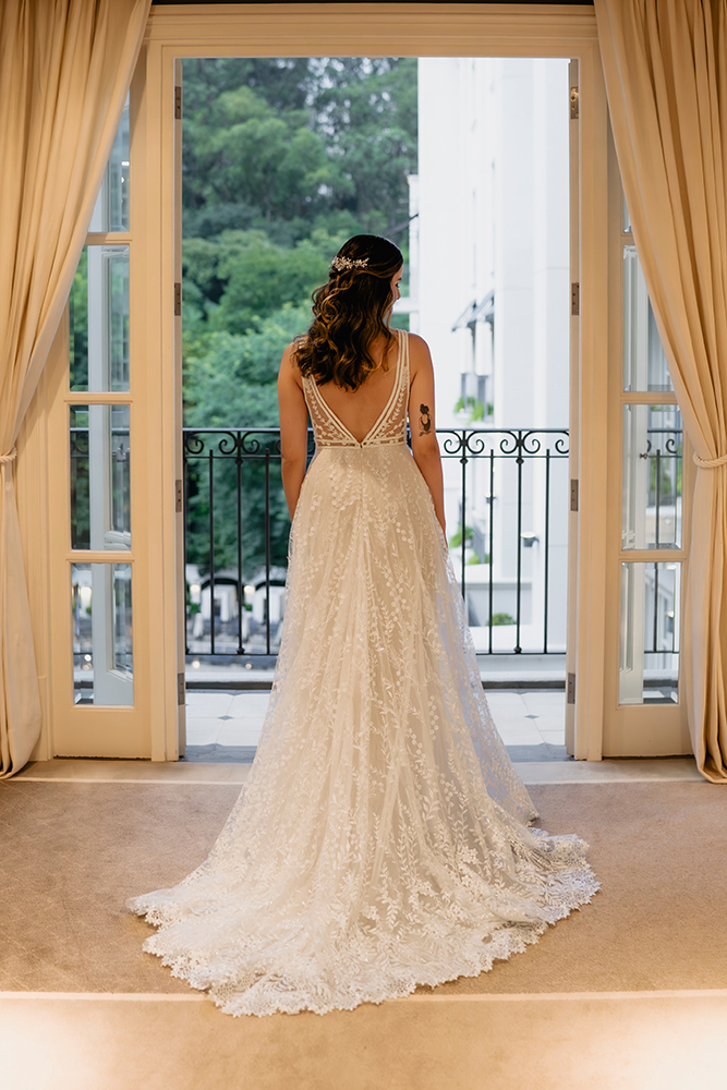 O penteado semi-preso, o belíssimo vestido em renda e o ambiente charmoso do Tangará deixaram as fotos ainda mais bonitas!