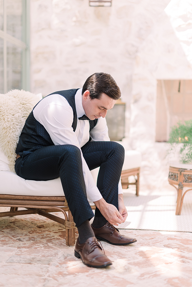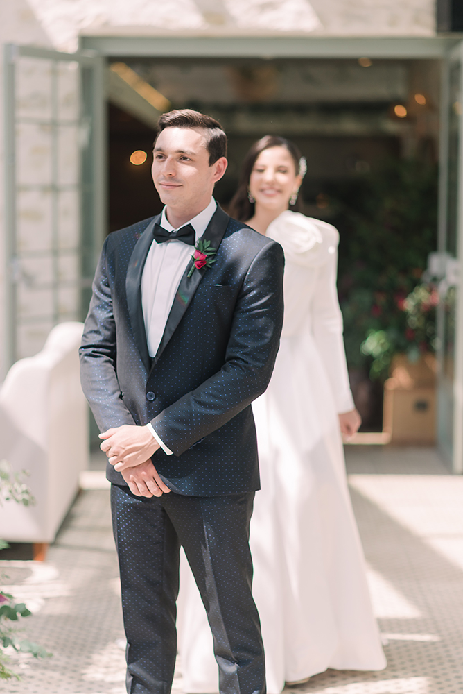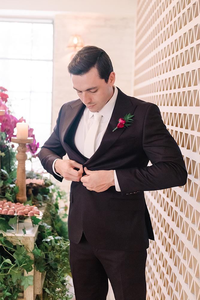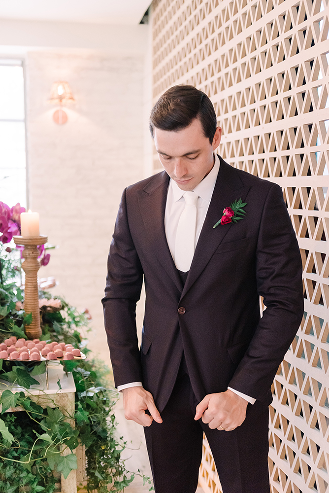 Da mesma forma, o noivo teve dois momentos, ambos com trajes da P8 Noivos.