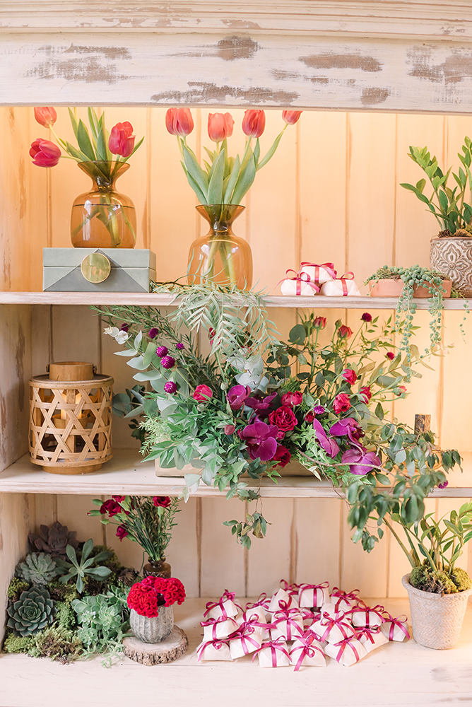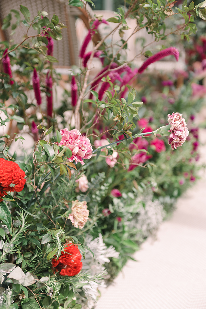 No mesmo caminho, a decoração ganhou inúmeras flores e texturas, superando qualquer expectativa. Como costumo destacar, a graça de usar a cor Pantone como tema é brincar com suas nuances, sem preciosismo e com muito bom gosto.
