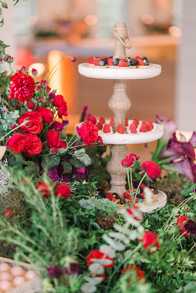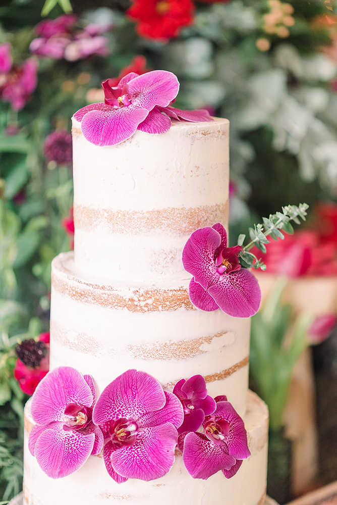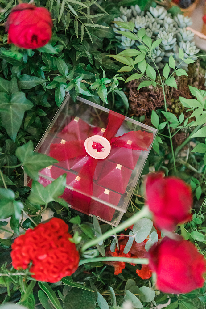 A mesa de doces em 360 recheada com as guloseimas da Glacé Pâtisserie é só um dos muitos cantinhos especiais. O bolo decorado com flores naturais, os chocolates e os doces com frutas são uma verdadeira experiência para a visão, o olfato e o paladar!
