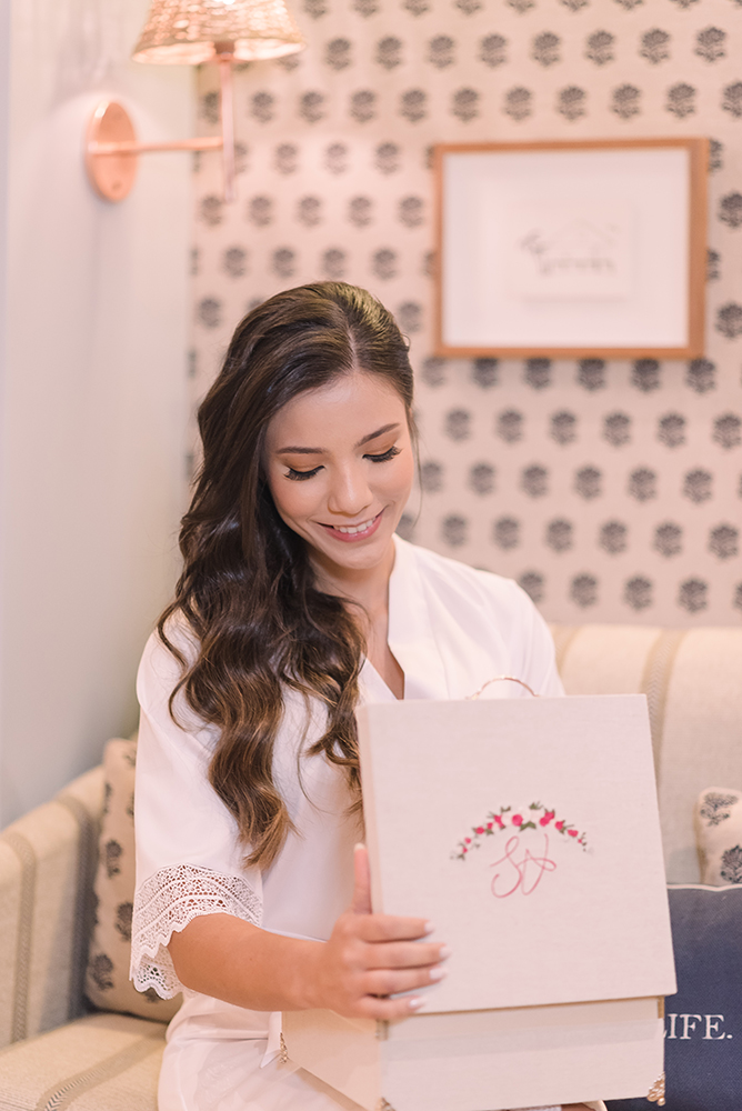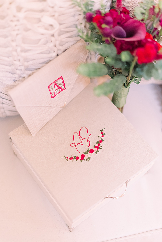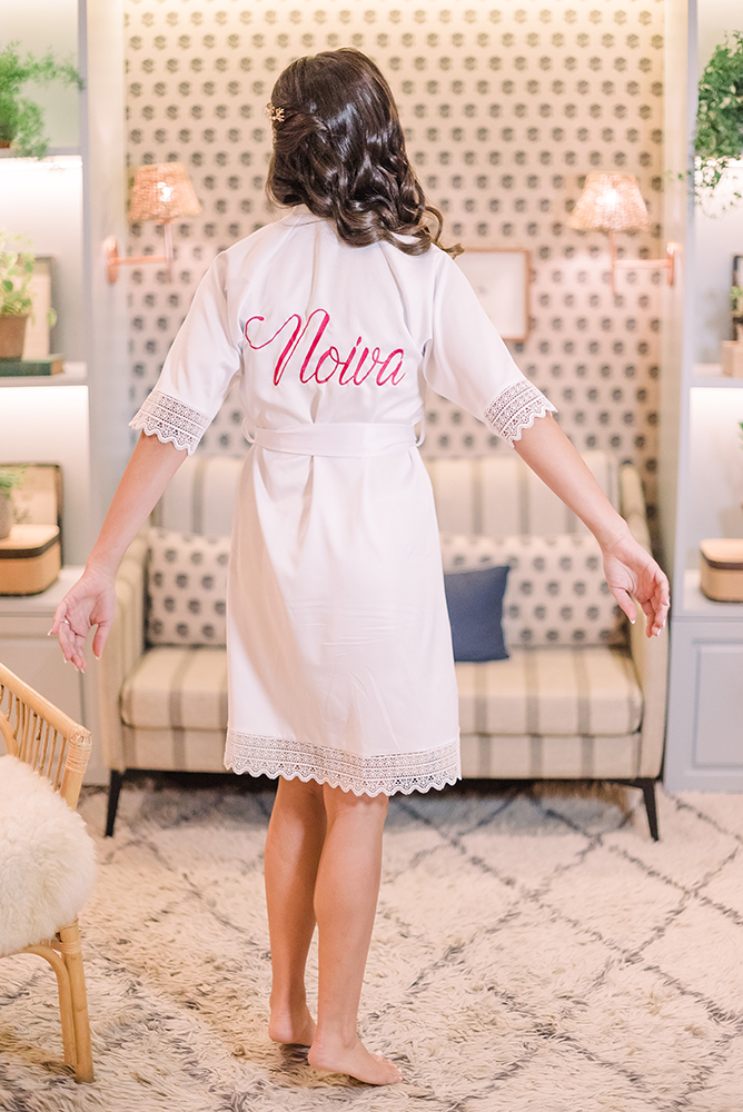 O bastidor é da Dani Bordando, enquanto a caixa maravilhosa, o robe da noiva e a clutch são da Balangandã, parceira querida que sempre cria coisas lindas!