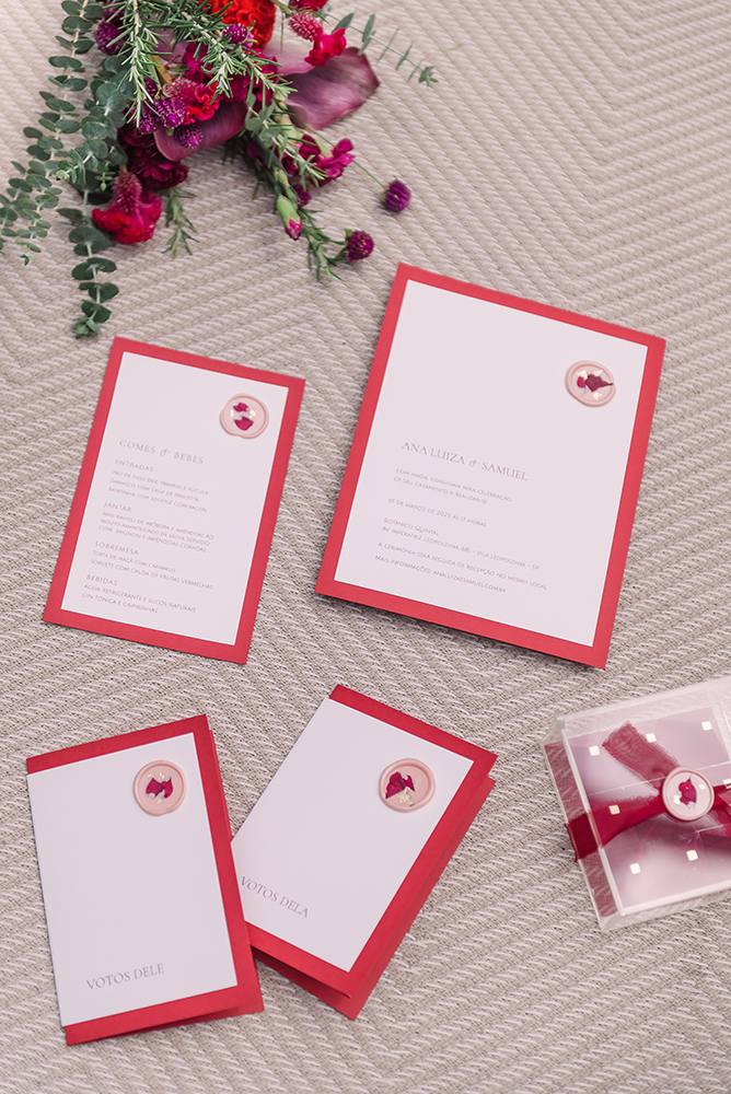 E aí, para completar, a Galliari Design preparou uma papelaria sob medida para a cor Pantone, com caderninhos de votos e caixinha de acrílico.