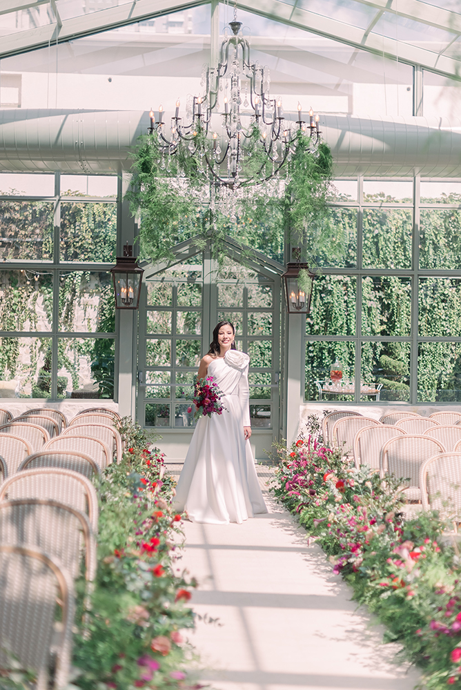 Sua vibração ganhou equilíbrio com o Botânico Quintal como cenário, já que o local claro e extremamente romântico recebeu a Pantone 2023 da melhor maneira possível.
