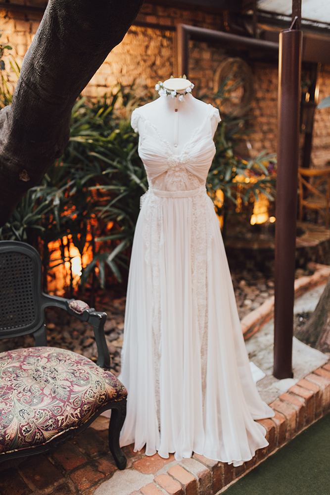 Helen respondeu dúvidas sobre vestidos sob medida e deixou o Espaço Quintal ainda mais bonito com dois de seus vestidos.