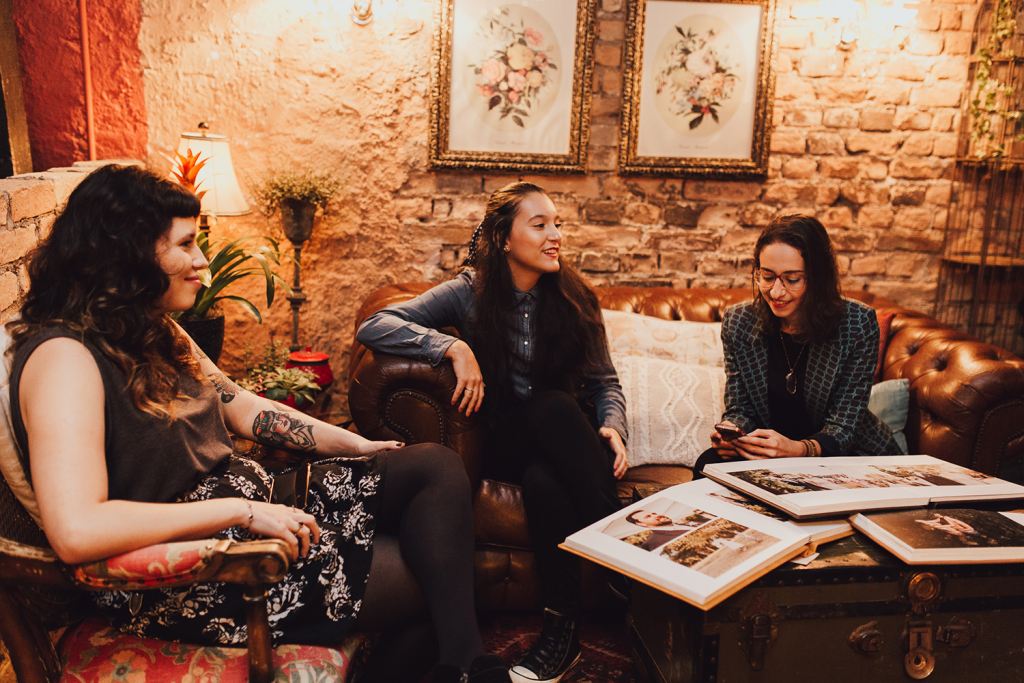 Lucas e Thaís, dois queridos, levaram álbuns para que as noivas vissem um pouquinho do trabalho que realizam e ainda registraram todos os detalhes do evento.